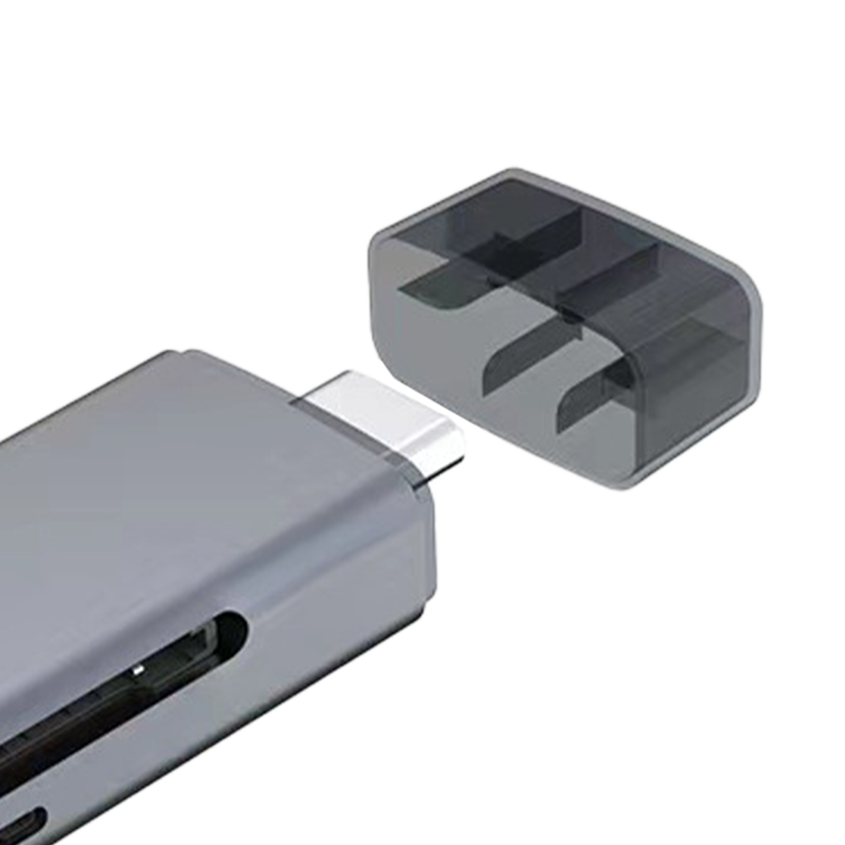 This USB 3.0 & Type-C 4-in-1 card reader supports simultaneous SD and TF card reading and is compatible with smartphones, tablets, and laptops. It features a USB 3.0 high-speed interface with transfer speeds up to 450MB/s, enabling fast file, photo, and video transfers. The device supports multiple operating systems without requiring drivers, offering a plug-and-play experience. With a durable aluminum alloy casing, it is built to last. Ideal for data backup, file management.